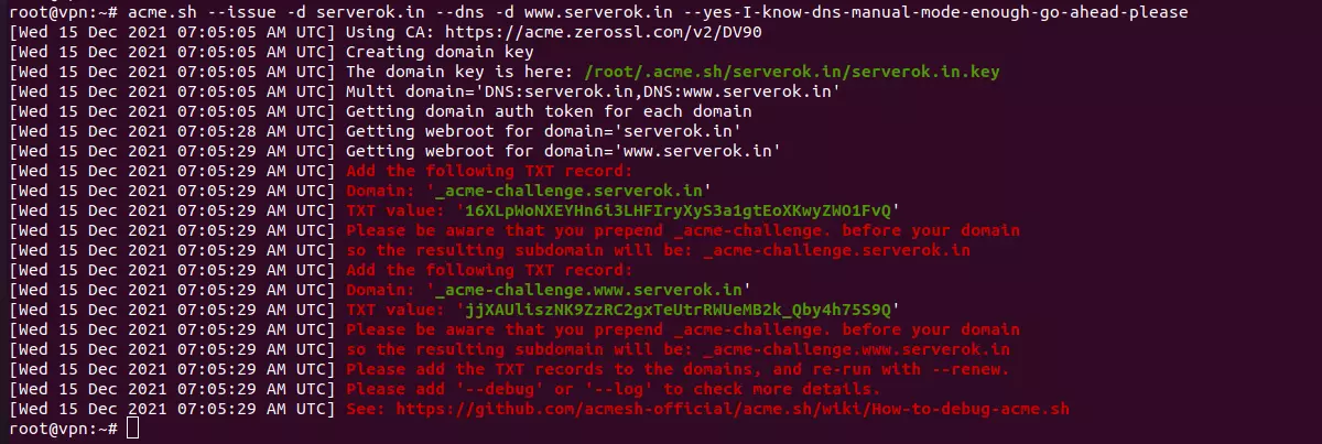 acme.sh --renew -d DOMAIN_NAME -d www.DOMAIN_NAME --yes-I-know-dns-manual-mode-enough-go-ahead-please --debug