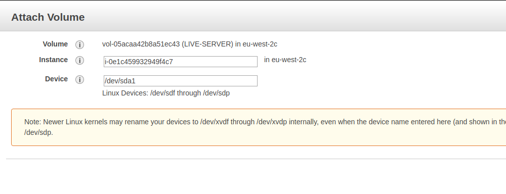 9) Detact the disk from tmpServer (/dev/xvdf)