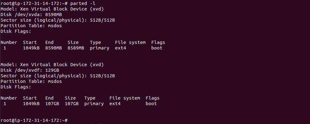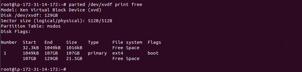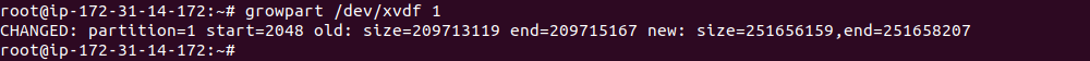 In this cause /dev/xvdf is the disk that need to be resized. Current Size is approx 107 GB.