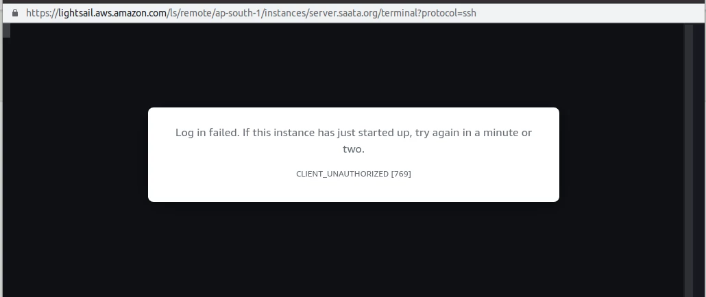 Amazon Lightsail Log in failed – CLIENT_UNAUTHORIZED