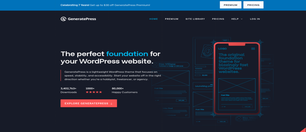 The great news about GeneratePress is that any beginner could install the theme and start blogging within minutes. As for more advanced developers, it’s a fast, lightweight, and highly customizable free WordPress theme.
