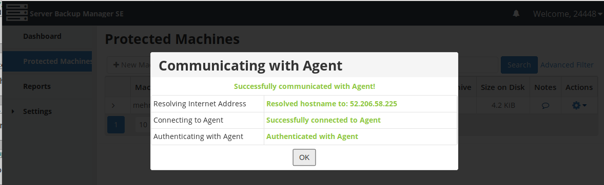 Verify backup manager can connect to protected machine. If you can’t connect, you need to open TCP port 1167 on firewall.