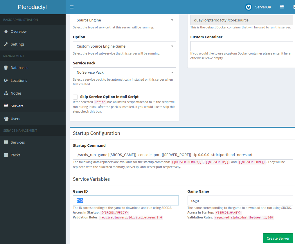 Click “Create Server”