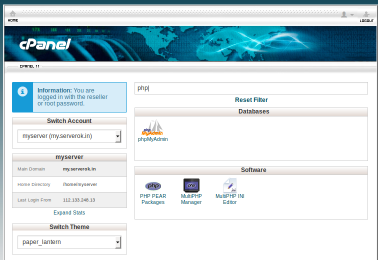 Click on “MultiPHP Manager” button. On next page, you will be able to change PHP version for the web site.