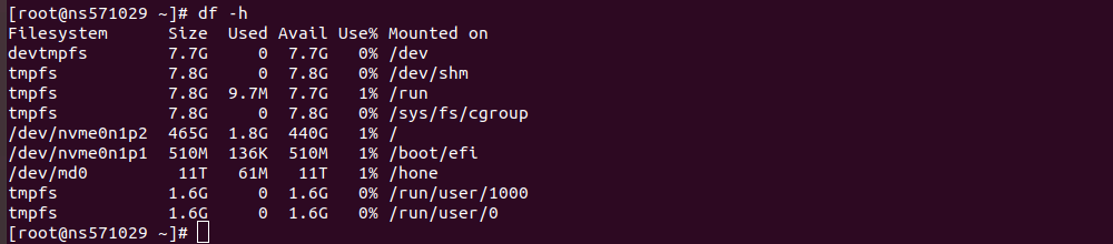 After rebooting, i have 11 TB RAID 5 drive mounted as /home