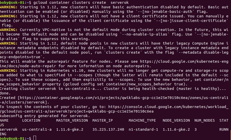 gcloud container clusters create CLUSTER-NAME