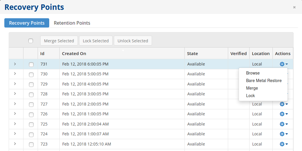 Click “Open Recovery Points” in the pop up menu. You get a new window with all available recovery points.