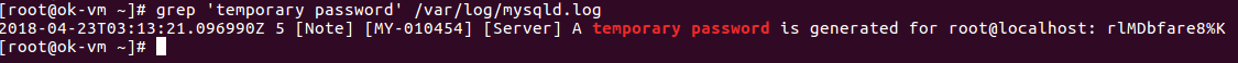 grep 'temporary password' /var/log/mysqld.log