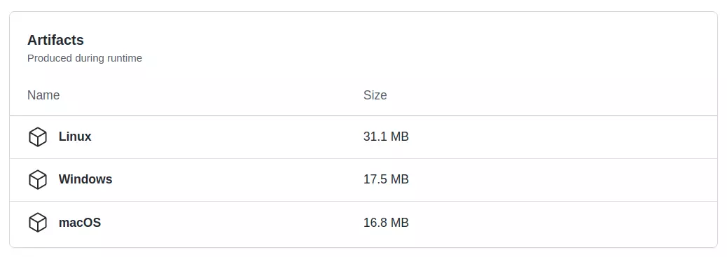 Click on any of the actions with a green tick mark. Under Artifacts, you will see the download link for various operating systems.
