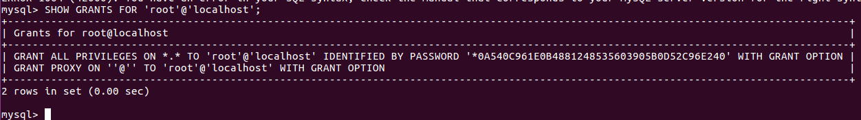 SHOW GRANTS FOR 'root'@'localhost';