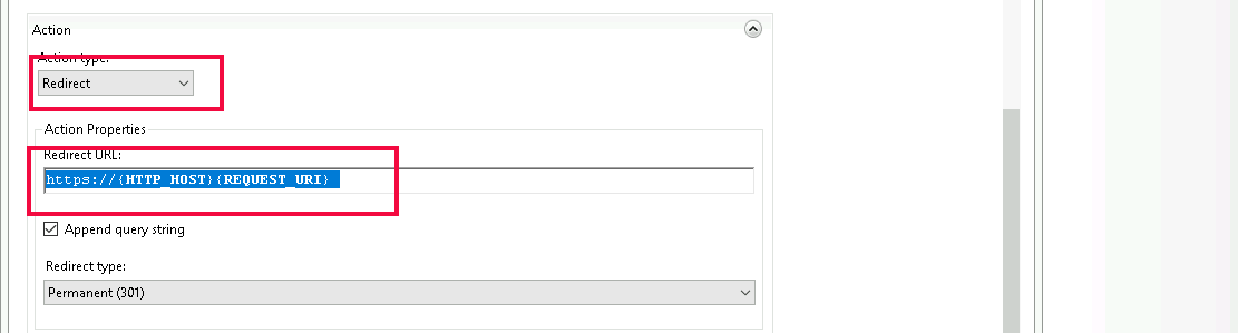 Action type = Redirect