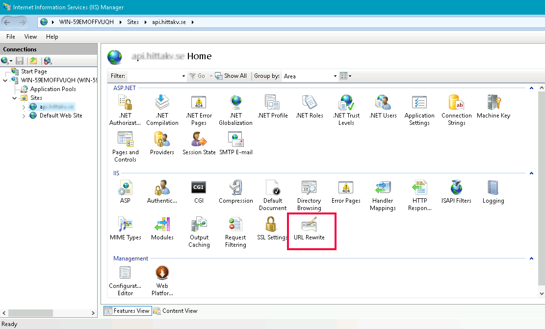 Click on “URL Rewrite” button. On the next screen click on “Add Rule(s)” link on the right side menu.