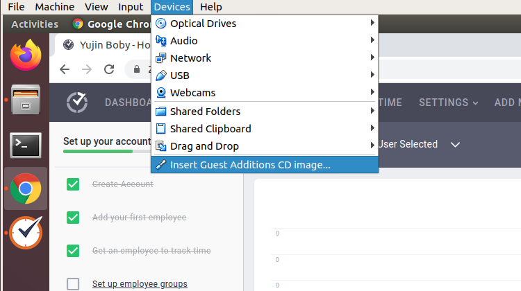 Devices > Insert Guest Additions CD image