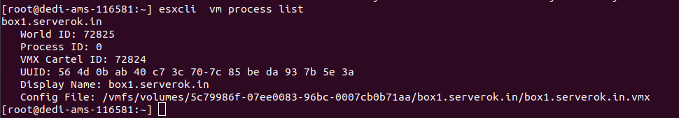 esxcli vm process list